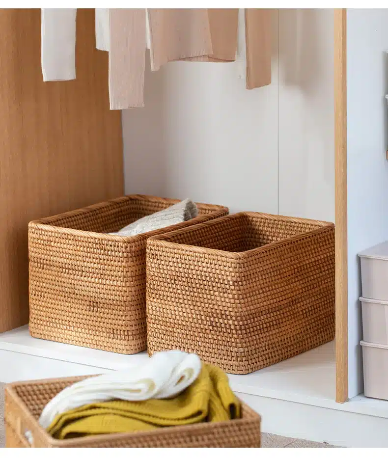 Boîte de rangement osier tressé avec couvercle Marron/Beige – Rangement maison – Osier